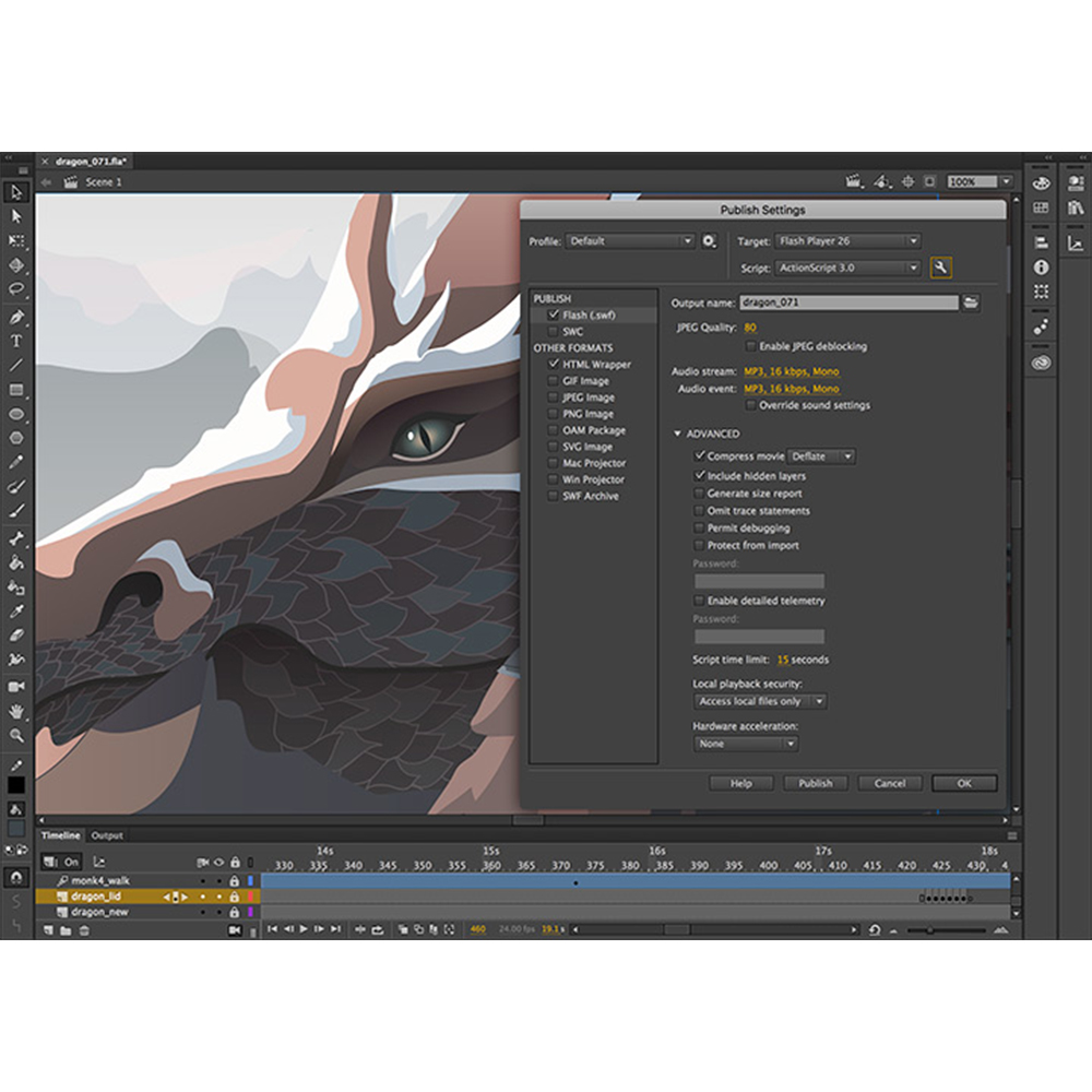 Design interactive animations for games, TV shows, and the web. Bring cartoons and banner ads to life. Create animated doodles and avatars. And add action to eLearning content and infographics. With Adobe Animate, you can quickly publish to multiple platforms in just about any format, and reach viewers on any screen.