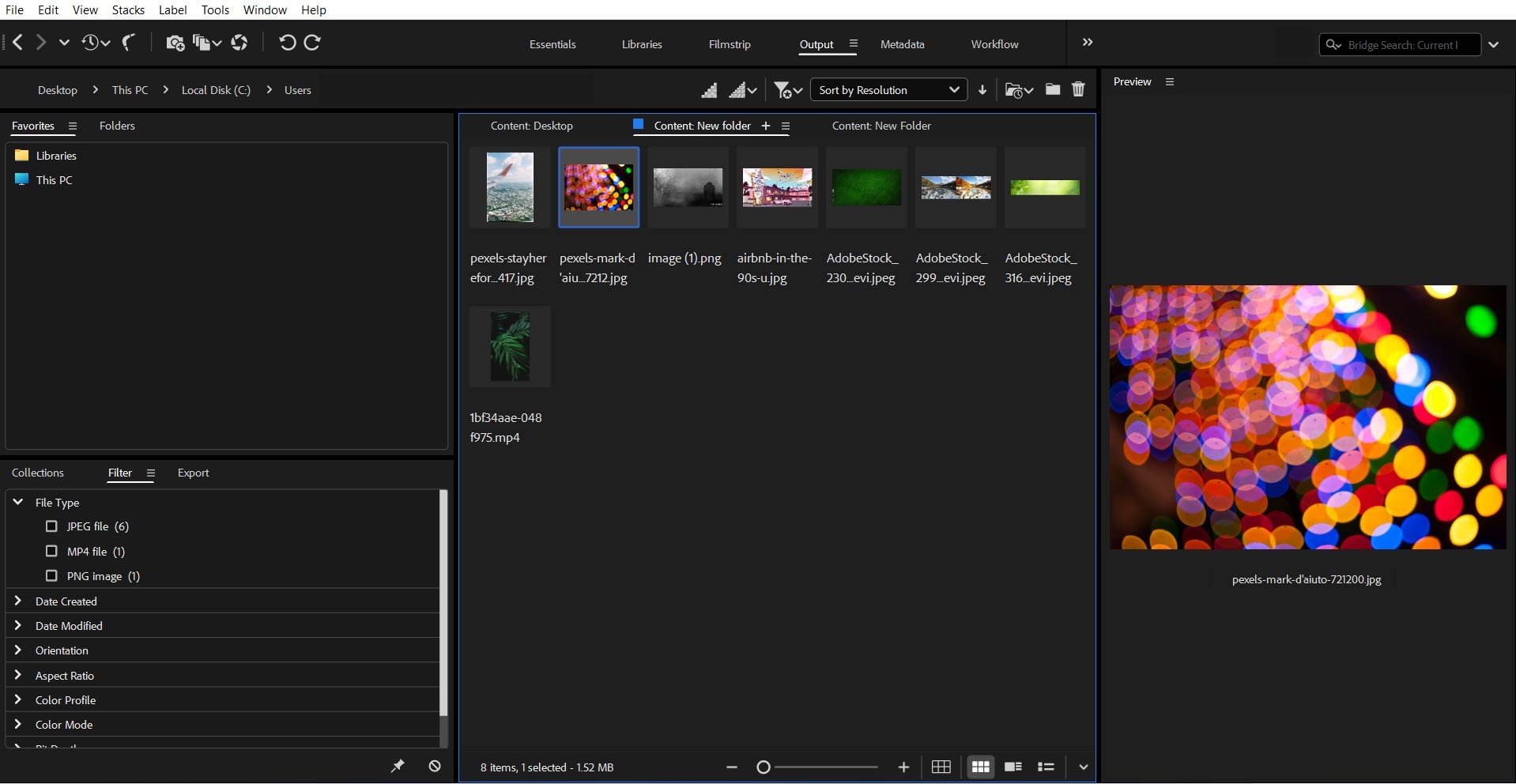 The Libraries workspace in Bridge now displays a high-quality preview of library items. You can select multiple items to see their previews together.